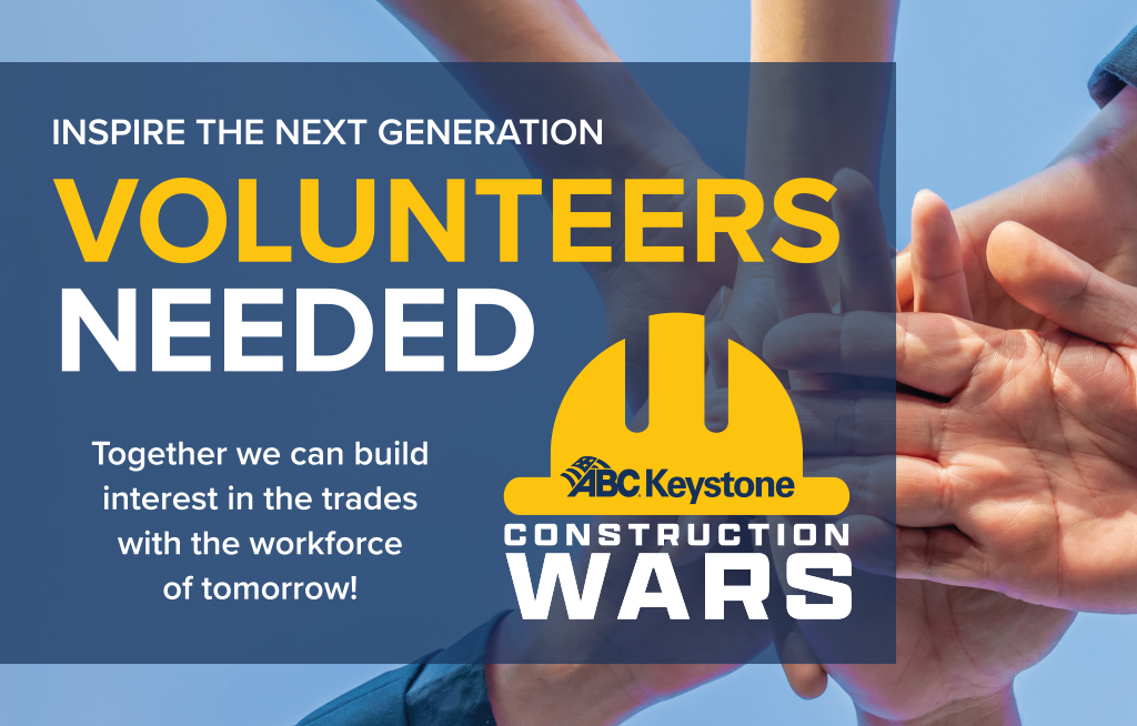 ABC Keystone is looking for industry professionals, instructors, and supporters to volunteer during this three-day event. Volunteers play a critical role by guiding students through interactive skill stations, sharing real-world insights, and showing what a career in construction can look like.