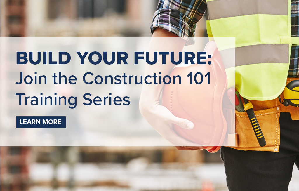 Jumpstart your construction career with the Construction 101 Series. This nine-session course provides a practical overview of how construction projects come together — from planning and design to contracts, estimating, virtual design and construction (VDC) technology and risk management.